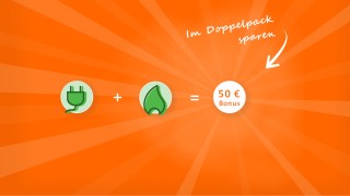 Übrigens: Sie erhalten von uns zwei separate Verträge (einen für Ökostrom und einen für Erdgas), aber einen fixen Bonus in Höhe von 50€. Dass wir Ökostrom und Erdgas nicht im Kombi-Tarif, aber aus einer Hand anbieten, hat für Sie den großen Vorteil, dass Sie sich den jeweils für Sie besten Ökostrom- und Erdgas-Tarif einfach kombinieren können. So sind Sie flexibel und müssen kein vorgegebenes Komplettangebot nutzen um sparen zu können.