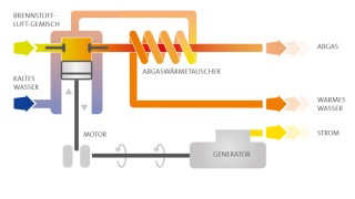 Das eine tun und das andere nicht lassen: Blockheizkraftwerke erzeugen neben der Wärme für Heizung und Warmwasser auch Strom. Diesen können Sie natürlich auch gleich im eigenen Haus verbrauchen. Das Herzstück eines BHKW ist ein Verbrennungsmotor, der mit Gas oder Heizöl betrieben werden kann. Der Motor im Blockheizkraftwerk betreibt einen Generator zur Stromerzeugung. Die bei der Verbrennung entstandene Abwärme wird für Heizung und Warmwasserbereitung genutzt. So einfach geht das!
