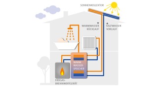 Legen Sie noch eine Schippe drauf: Denn Ihre Gasbrennwertheizung ist optimal mit Solarwärme kombinierbar! So sorgen Sie doppelt effizient für wohligen Komfort: Die Heizung ist für das Beheizen des Wohnraums zuständig und eine Solarthermieanlage für die Warm-Wasserbereitung. Und sollte die Wassertemperatur im Brauchwasser-Speicher aufgrund geringer Sonneneinstrahlung mal nicht ausreichen, heizt der Brennwertkessel automatisch nach.
